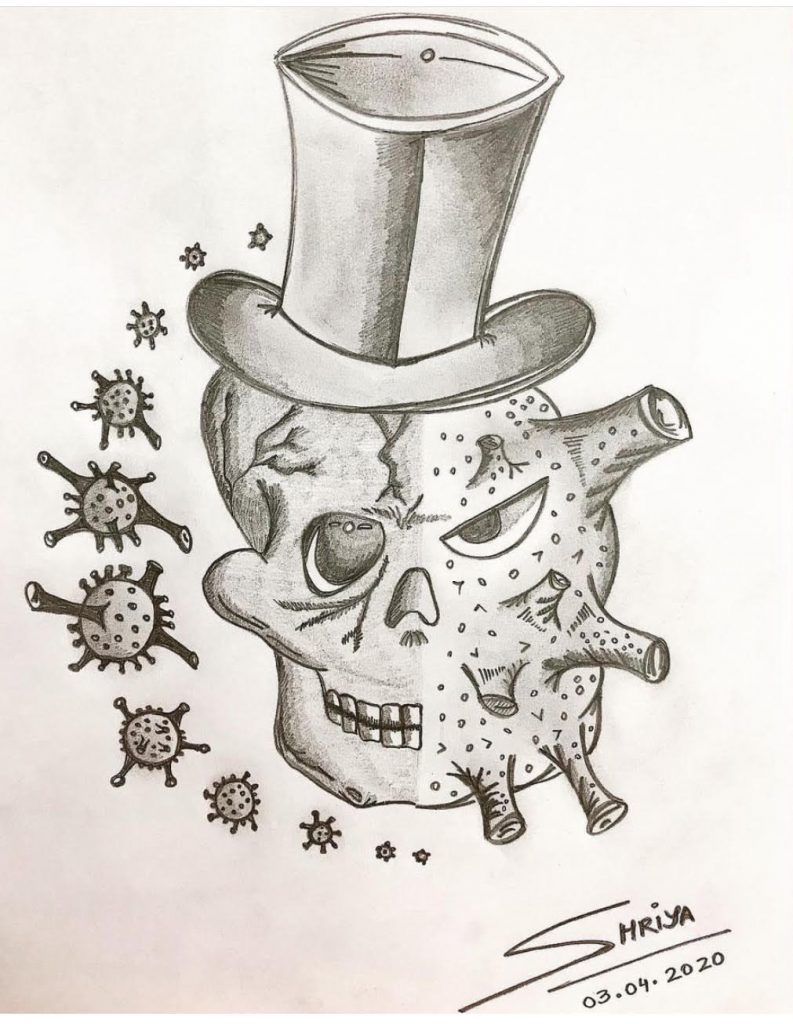 Now, let’s get to the question really. So, I have always been drawn to various forms of expression, whether it’s painting, learning French, public speaking / debating or engaging in sports during my school years. However, the demand of our legal profession often overshadows our hobbies and interests and hence, I try to find some time for myself (which honestly does get tough – Covid was a bliss and I did some rather interesting sketches which I’ve put out for you all to relish!) Till date, I enjoy sketching and painting (be it an oil or water base). I believe art helps relax. Besides, it pushes me to develop a sense of focus, adherence to deadlines while giving me a sense of fulfillment. Another exercise till date which I engage in since I became a lawyer was to seek daily feedback from my father – Advocate Rajive Maini. As my boss, mentor, guru and father, we engage in a delightful ritual post work, at the dinner table fondly playing our “barrister versus solicitor” game, whereas as a whimsical yet insightful exercise we assess daily chamber performance, teaching us how to improve with constructive feedback. We have other interns and associates in our Chamber as well, all working together as a team!